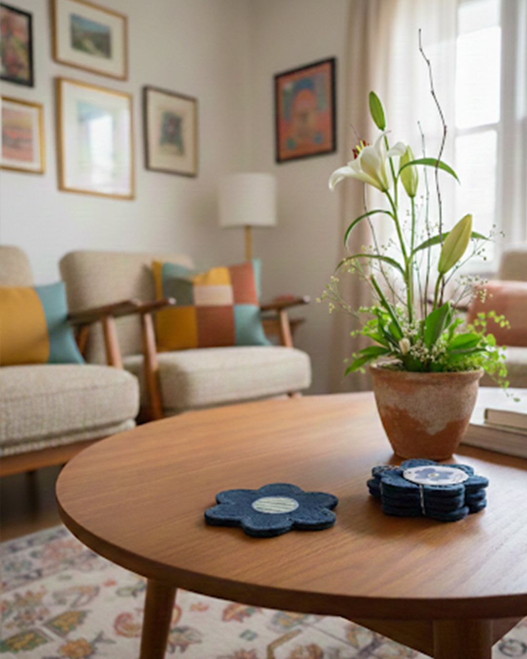 Denim on Stripe Floral Coasters (set of 4)