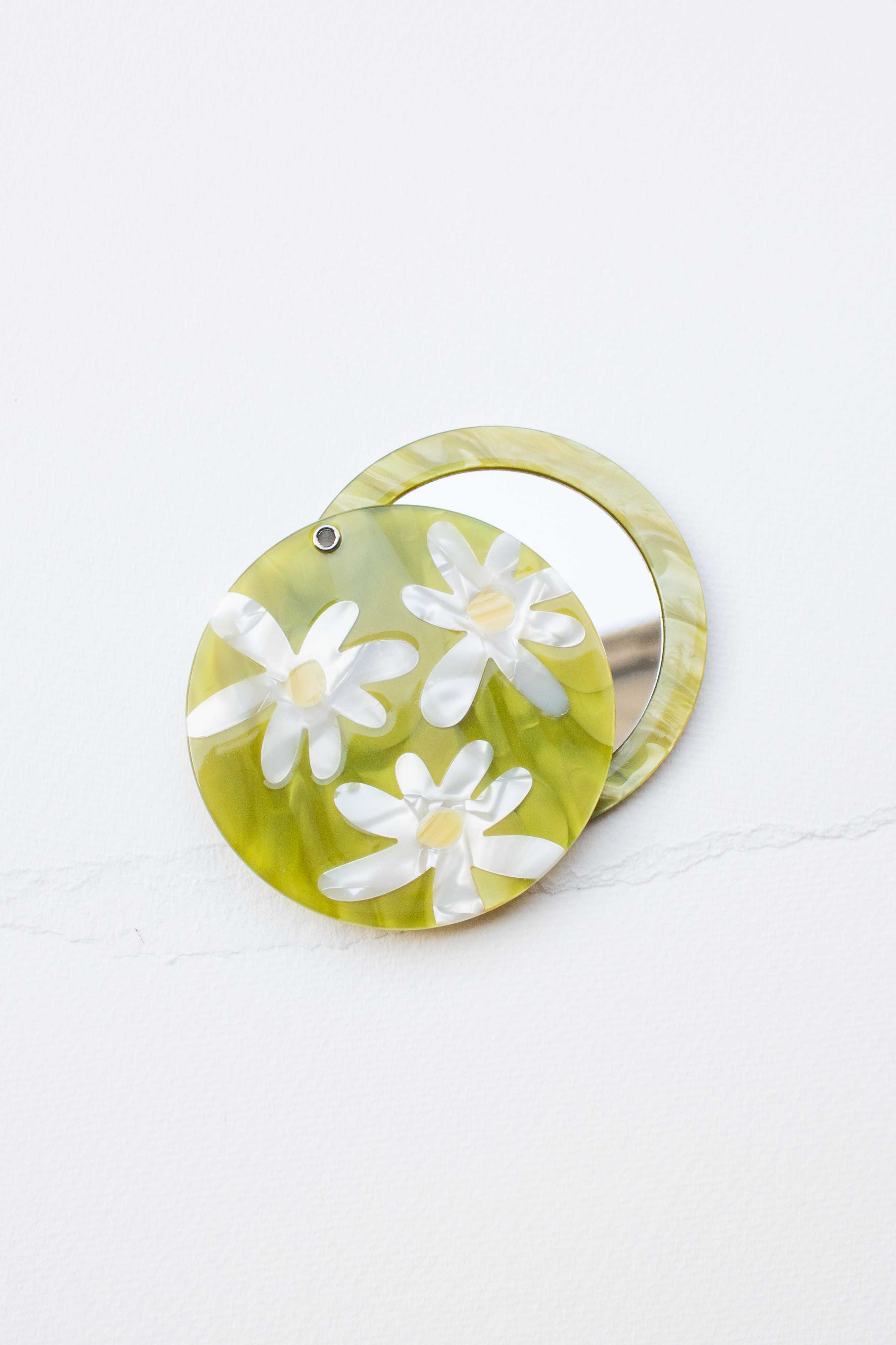 Eco Acetate Daisy Compact Mirror : Honeydew
