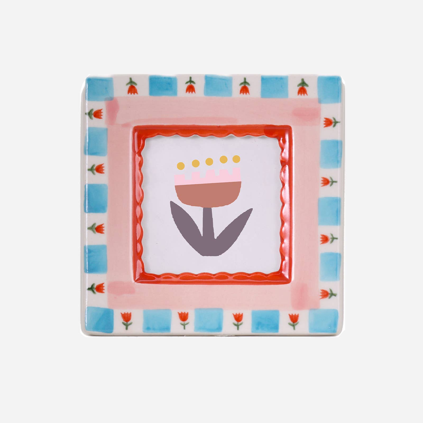 Hand-painted Ceramic Photo Frame, Red Flowers