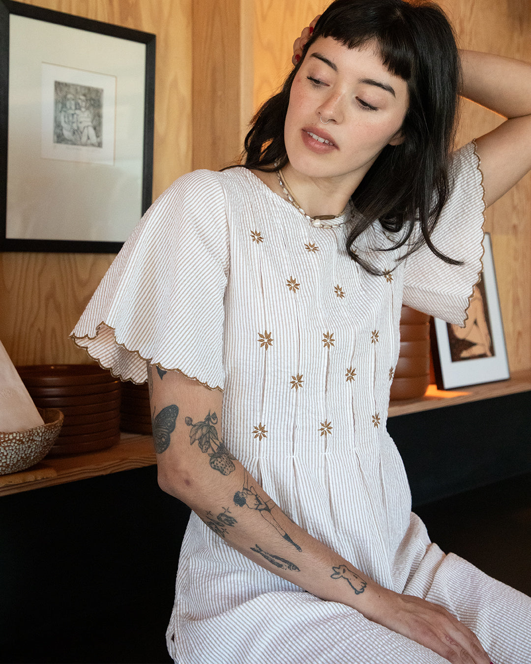 Harper Chestnut Meadow Dress -Neutral Stripe