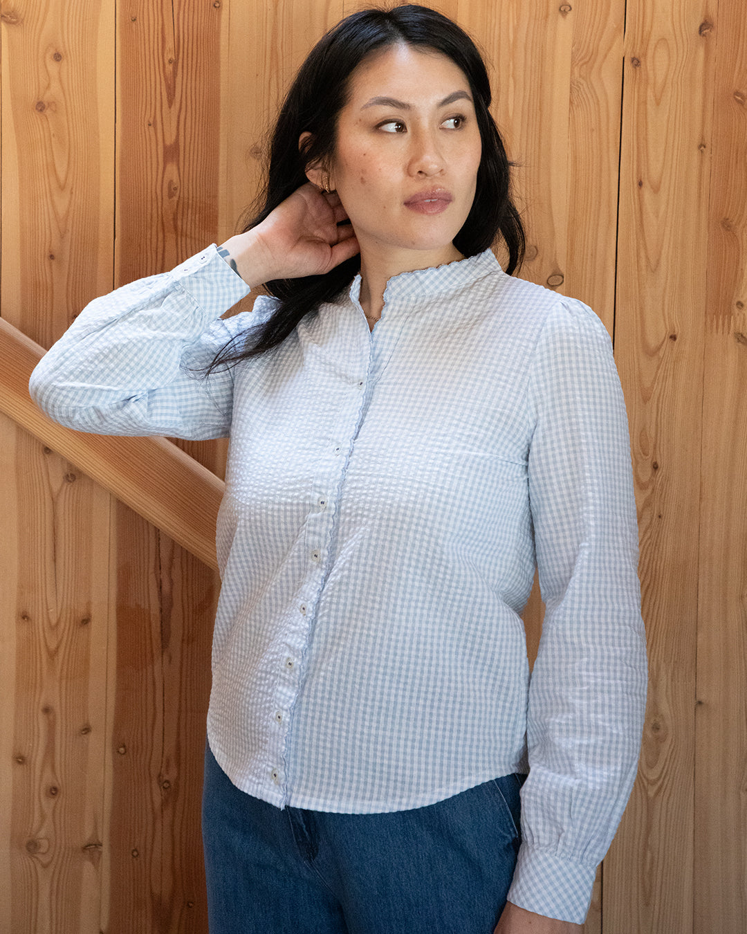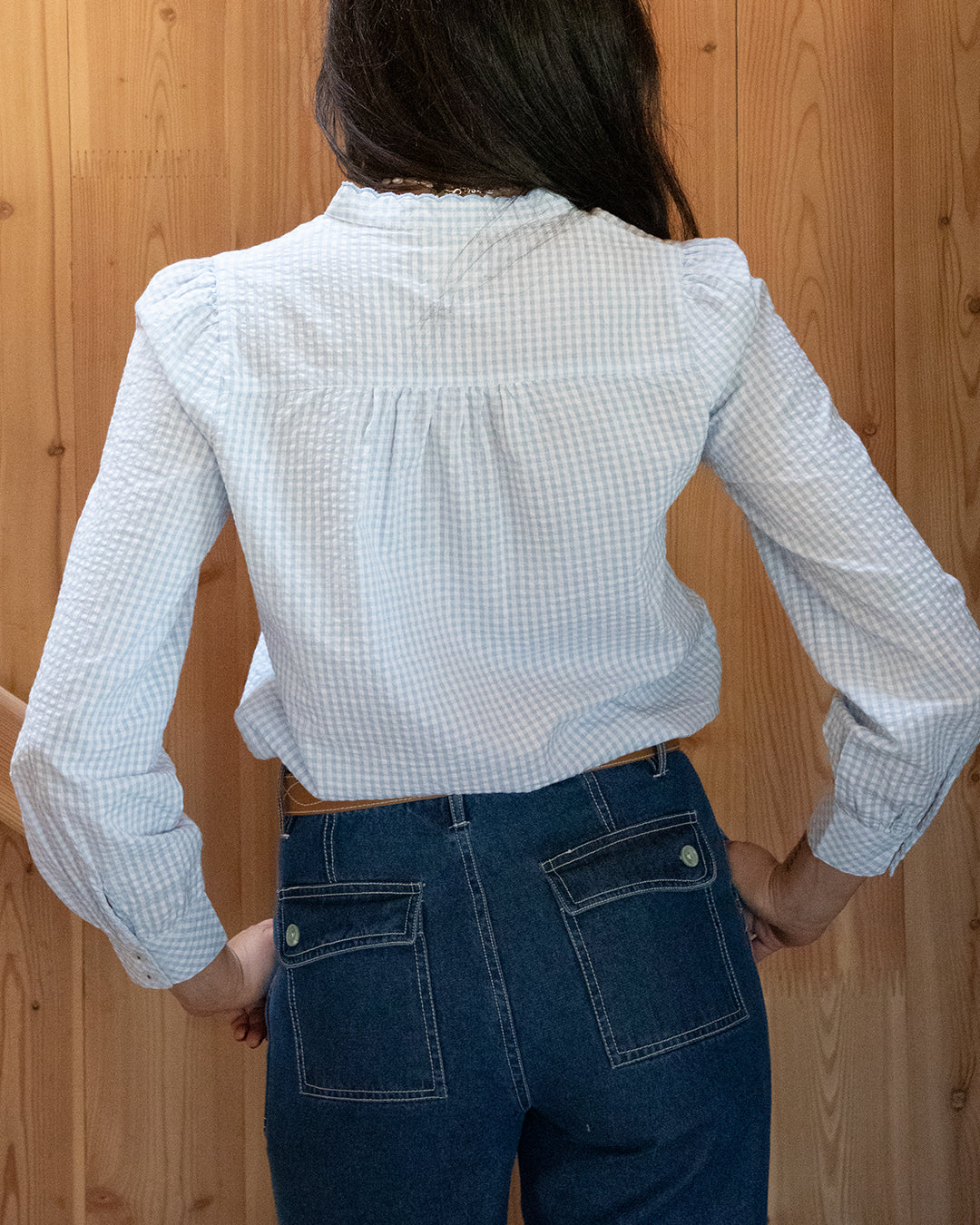 Harper Cloudveil Blouse, Lt Blue Gingham