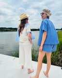 Our process is intentional—small, low-waste batches with locally sourced, high-quality natural fabrics and rescued surplus materials. Digital printing helps conserve water, while limited runs prevent overproduction. Whimsy filled designs, always gentle on the planet.