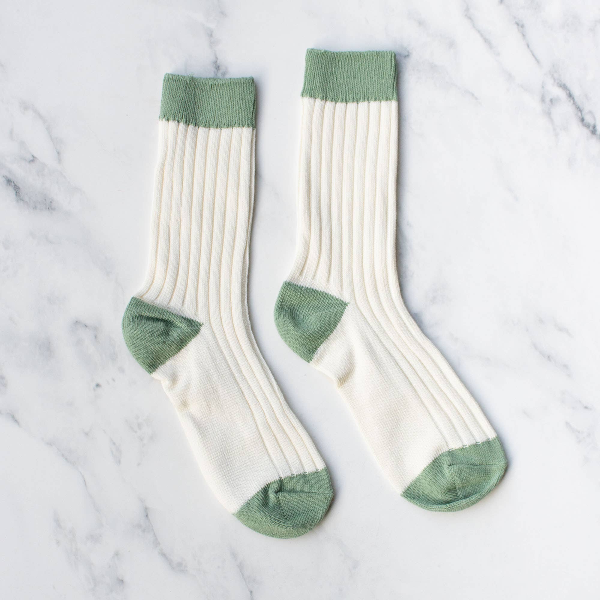Women's 2 Tone Jacquard Casual Socks: Ivory/Sage
